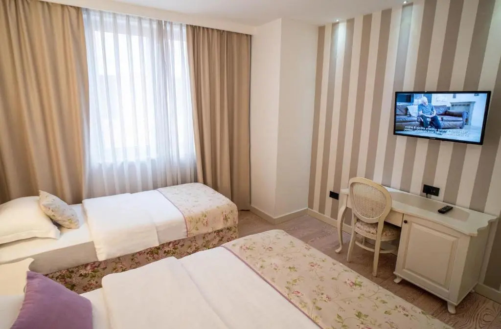 Номер уютно обставлен и оснащён необходимым, чтобы отдохнуть после долгого и насыщенного дня. Имеются душ и телевизор. Оснащение зависит от выбранной категории номера.
