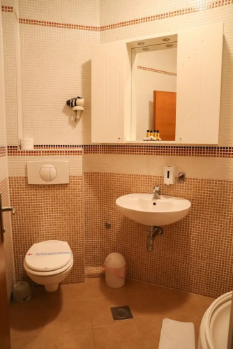 В номере вас будут ждать душ, телевизор и тапочки. Оснащение зависит от выбранной категории номера.