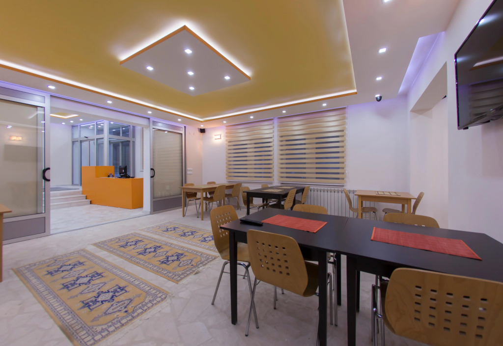 Номер уютно обставлен и оснащён необходимым, чтобы отдохнуть после долгого и насыщенного дня. Имеются будильник, душ, телевизор и тапочки. Оснащение зависит от выбранной категории номера.