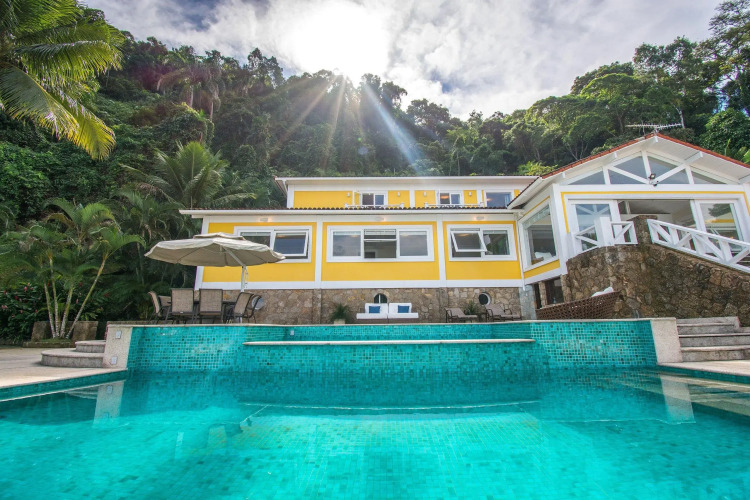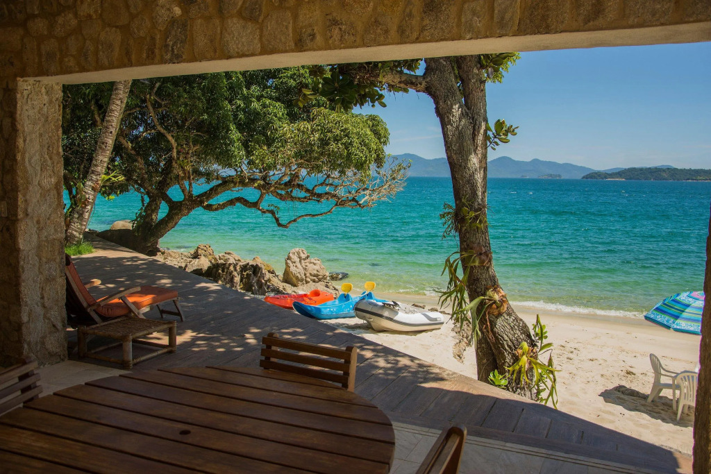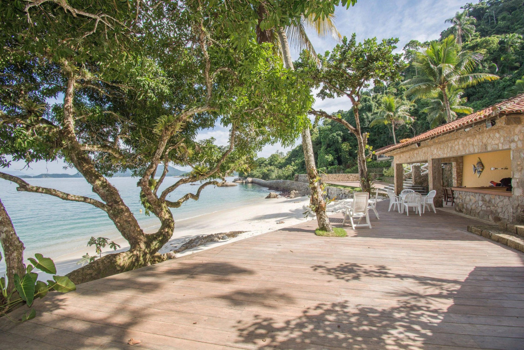 Отель Linda villa com praia exclusiva, nove suítes em condomínio, адрес на карте Ангра-дос-Рейс, Rodovia Mario Covas, KM 480, Ponta Da Mombaça, с описанием номеров и возможностью онлайн бронирования на ресурсе ВашОтель.RU , цены проживания и удобства.