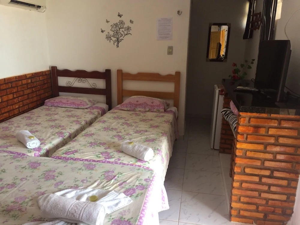 Отель Pousada Rosa De Saron, адрес на карте Аракати, 187 Rua Francisco Germano, с описанием номеров и доступностью онлайн бронирования на площадке vashotel.ru , стоимость проживания и удобства.