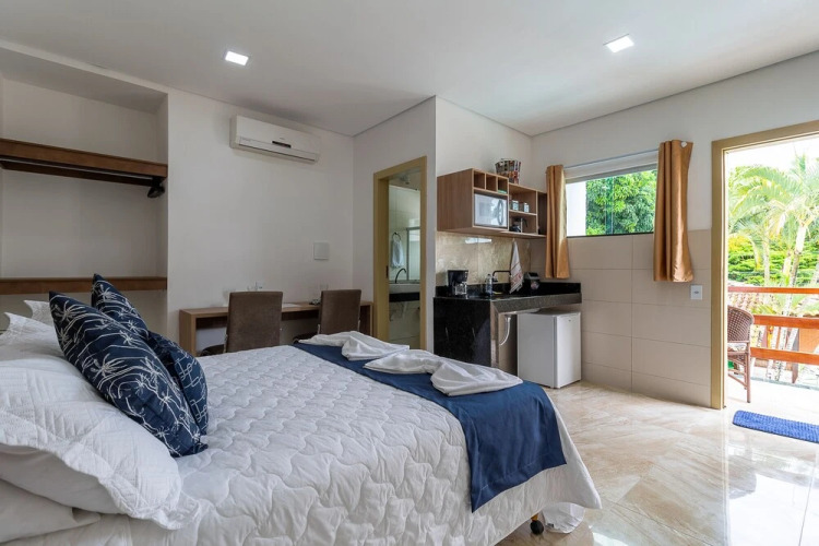 Отель Villa Sunset 3 звезды, адрес на карте Arraial d'Ajuda, R. dos Ipês 212, с описанием номеров и доступностью онлайн бронирования на ресурсе vashotel.ru , стоимость проживания и удобства.