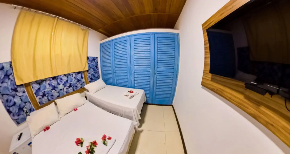 Отель Pousada Marinheiro 2 звезды, адрес на карте Кайру, Rua da Primeira Praia, 60, с описанием номеров и возможностью онлайн бронирования на сайте vashotel.ru , цены проживания и удобства.
