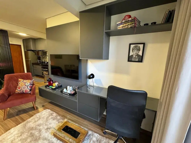 Отель Loft cama Kingsize 3min centro turístico, адрес на карте Кампус-ду-Жордан, Rua Dona Zilah, с описанием номеров и доступностью онлайн бронирования на сайте ВашОтель.RU , цены проживания и удобства.