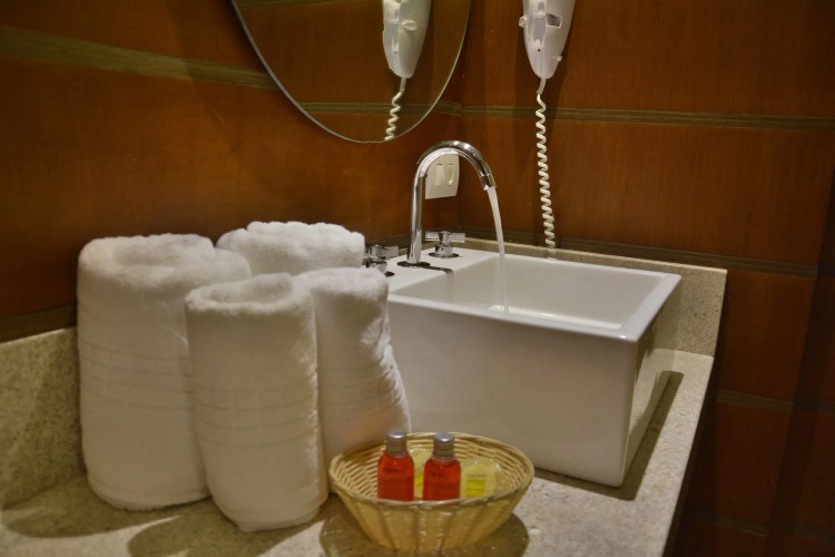 В номере вас будут ждать душ, телевизор, мини-бар и халат. Перечисленные услуги есть не во всех номерах.