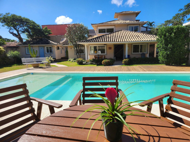 Отель Casa Palmeira Geribá, piscina, jardim e 5 quartos com A/C, muito espaço, адрес на карте Армасан дус Бузиус, Hibisco, 1, Geribá, с описанием номеров и доступностью онлайн бронирования на площадке ВашОтель.RU , стоимость проживания и удобства.