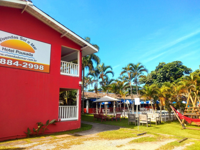 Отель Pousada Vivendas do Sol e Mar 3 звезды, адрес на карте Карагуататуба, Rua Thomaz Totti 95 - Massaguaçú, с характеристиками номеров и возможностью онлайн бронирования на сайте vashotel.ru , цены проживания и удобства.
