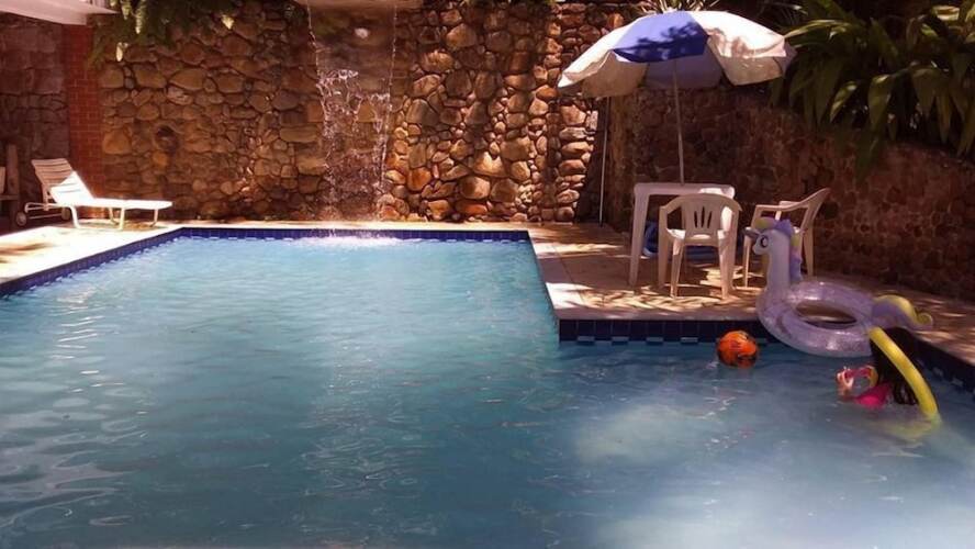 Хороший вариант для людей, любящих отдыхать в компании. Гостевой дом «Pousada Flor Da Cocanha» находится в Карагуататубе. Этот гостевой дом располагается в 10 км от центра города. Рядом с гостевым домом — Пляж Массагуасу и Пляж Коканья.