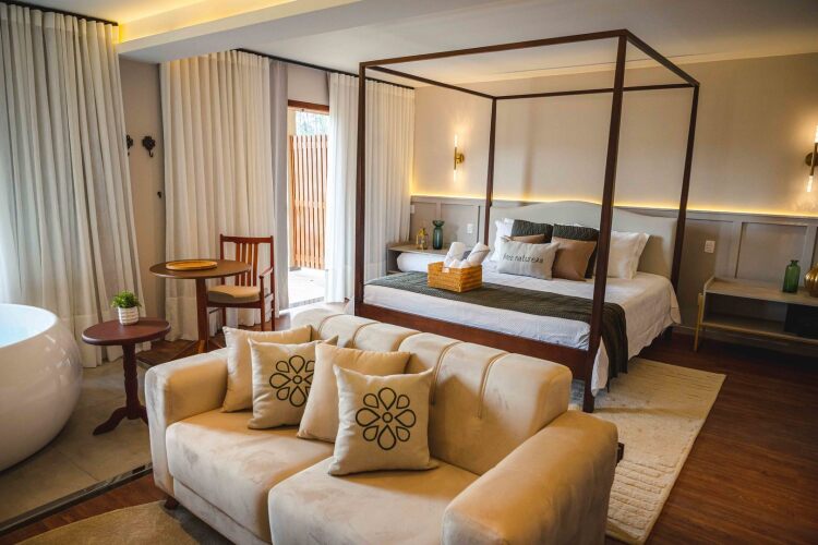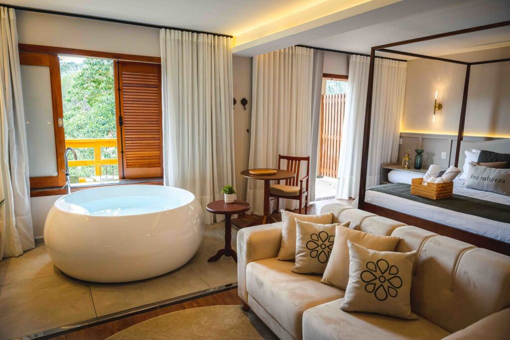 Отель Natureza Eco Lodge 4 звезды, адрес на карте Домингус-Мартинс, Alto Castelinho, Vargem Alta - ES, с описанием номеров и доступностью онлайн бронирования на сайте vashotel.ru , стоимость проживания и удобства.