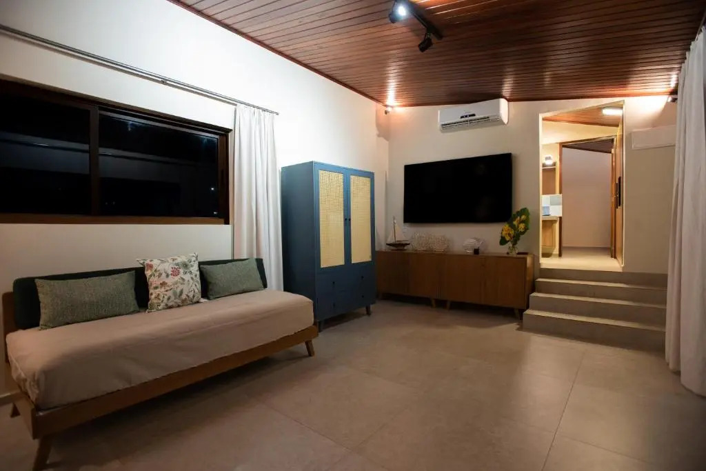 Отель Pousada Naonda 4 звезды, адрес на карте Фернанду-ди-Норонья, Av. Joaquim Ferreira Gomes -23 Porto Stº Antonio, Fernando de Noronha, CEP 53990000, Brazil, с описанием номеров и доступностью онлайн бронирования на сайте vashotel.ru , стоимость проживания и удобства.