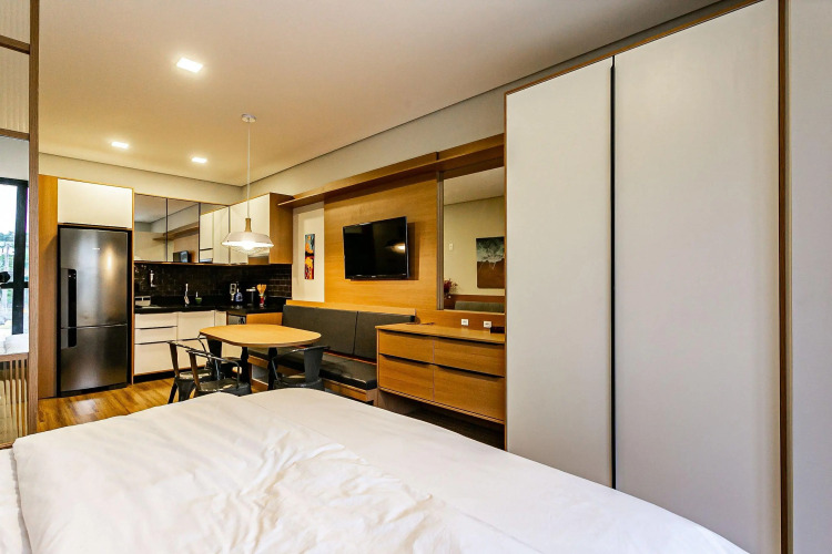Отель Apto c/ sacada a 400m da praia de Jurerê CPS207