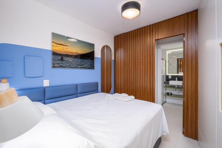 Отель Belíssimo e moderno studio para casais STU309, адрес на карте Флорианополис, Rua Lauro Linhares, 1335, Trindade, с характеристиками номеров и возможностью онлайн бронирования на сайте vashotel.ru , цены проживания и удобства.
