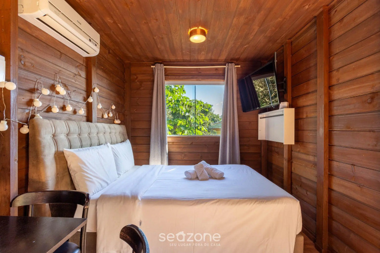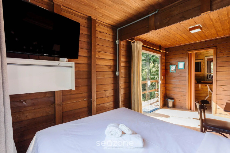 Отель Chalé rústico vista mar em Jurerê MAV004, адрес на карте Флорианополис, Rodovia Tertuliano de Brito Xavier, 3415, Jurerê, с описанием номеров и доступностью онлайн бронирования на ресурсе vashotel.ru , стоимость проживания и удобства.