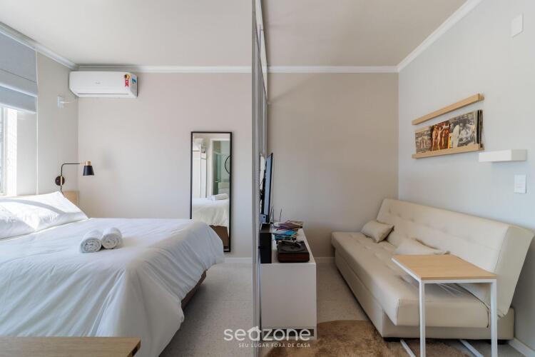 Отель Studio bem localizado no centro de Floripa EVA105, адрес на карте Флорианополис, R. Fernando Machado, 261, Centro, с характеристиками номеров и доступностью онлайн бронирования на ресурсе vashotel.ru , стоимость проживания и удобства.