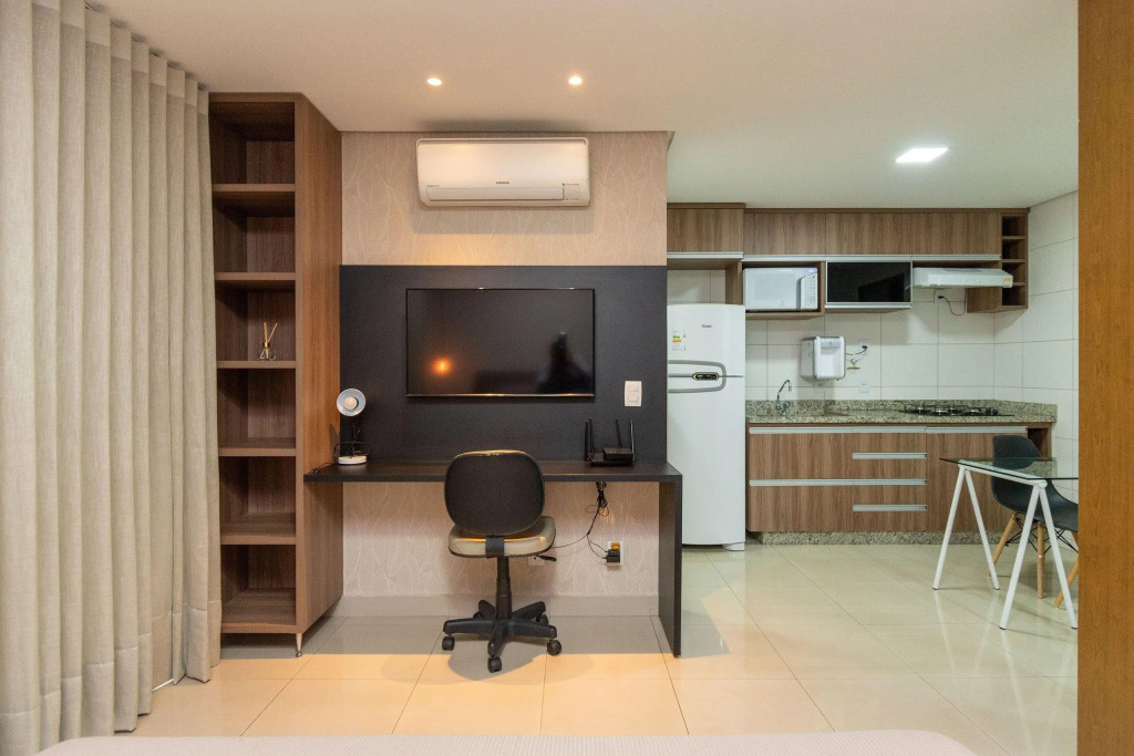 Отель Flat aconchegante no 15 andar - Setor Bueno - Ed. The Expression - TH1508, адрес на карте Гоания, Rua T-51, 921 1004, Setor Bueno, с описанием номеров и возможностью онлайн бронирования на ресурсе ВашОтель.RU , стоимость проживания и удобства.