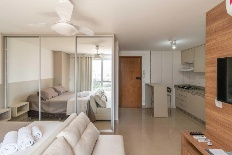 Отель Flat lindo no Ed. The Expression - Setor Bueno - Melhor localização de Goiânia - TH1007, адрес на карте Гоания, Rua T-51, 921, Setor Bueno, с описанием номеров и возможностью онлайн бронирования на ресурсе vashotel.ru , стоимость проживания и удобства.
