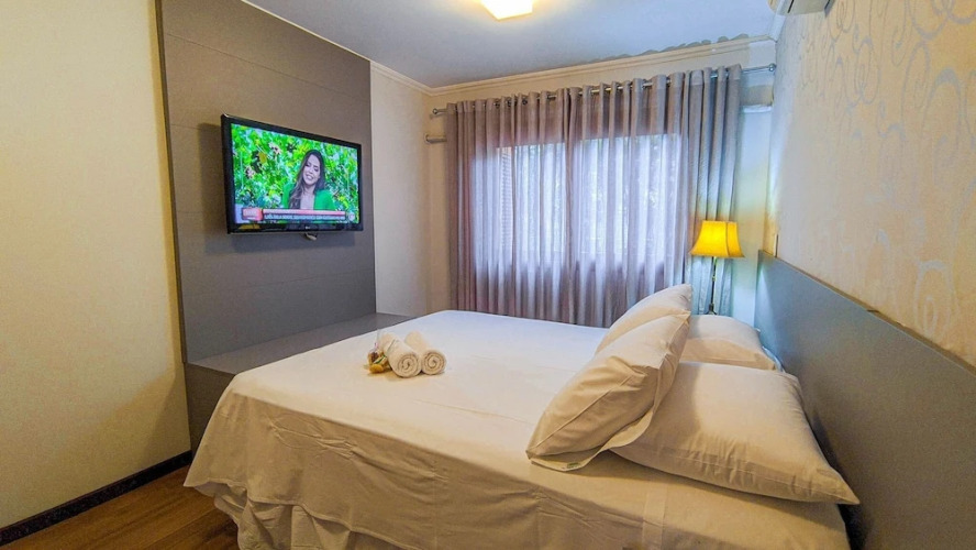 Отель Locar-in Gramado Apartamento Lindíssimo Centro, адрес на карте Грамаду, Rua Piratini, с описанием номеров и доступностью онлайн бронирования на площадке vashotel.ru , цены проживания и удобства.