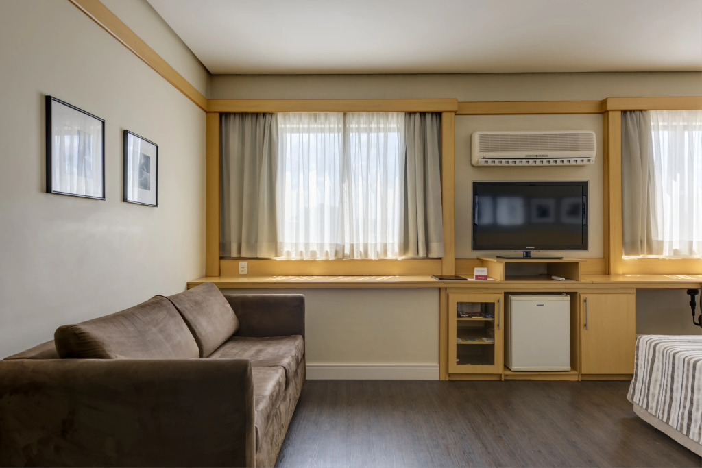 Отель Monreale Plus Guarulhos International Airport 3 звезды, адрес на карте Гуарульюс, R. Dr. Ramos de Azevedo, 88, с описанием номеров и правом онлайн бронирования на сайте vashotel.ru , стоимость проживания и удобства.