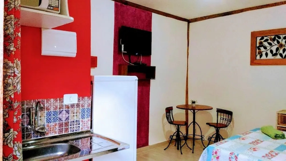 Хотите сбежать от суеты города и отдохнуть? Коттедж «Chalé de Charme MANDOMAI - Suítes Cozinha Compacta e Chalé Gourmet Exclusivos» располагается в Ильябеле. Этот коттедж находится в центре города. Утром — выпейте кофе, наблюдая из окна за жизнью города. Рядом с коттеджем можно прогуляться. Неподалёку: Пляж Переке.