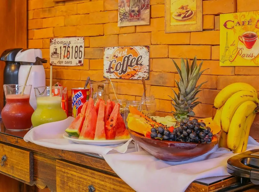Завтрак "шведский стол" сервируют только во время высокого сезона, с 20 декабря и до конца февраля. В его меню входят свежие фрукты, соки и разнообразные виды хлеба и выпечки.