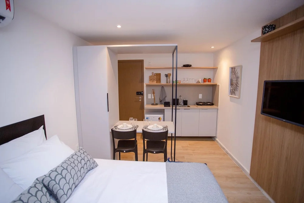 Отель Bauten Cabo Branco 302 - Flat moderno e equipado próximo ao mar por Carpediem 1 звезда, адрес на карте Жуан-Песоа, 1206 Rua Tabelião José Ramalho Leite, с характеристиками номеров и правом онлайн бронирования на площадке vashotel.ru , стоимость проживания и удобства.