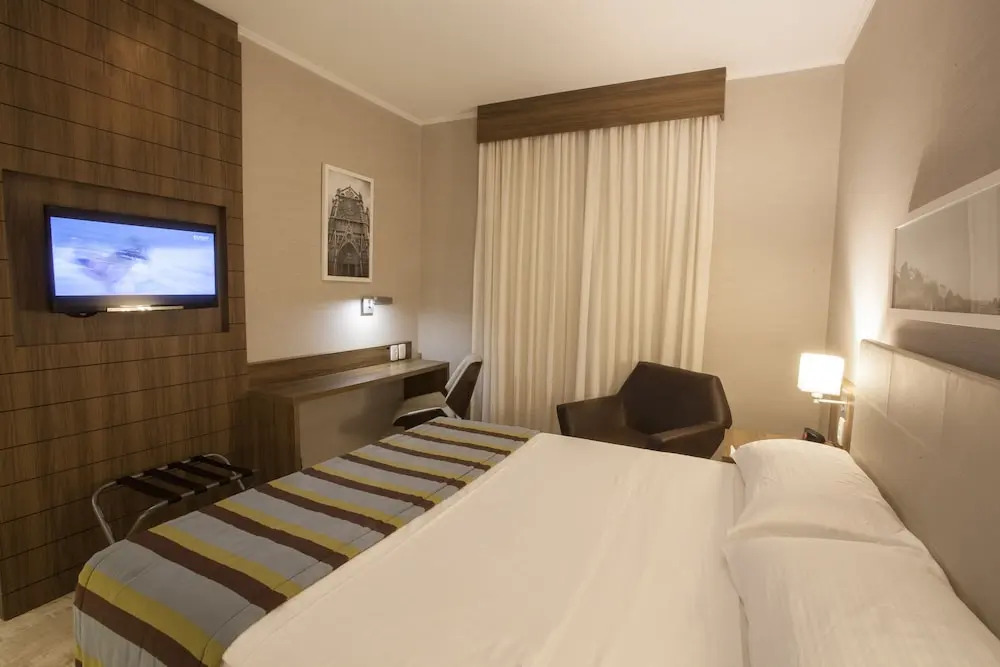 Отель Agisol Marília 3 звезды, адрес на карте Марилия, Av. Dr. Thimo Bruno Belucci 1001, с описанием номеров и доступностью онлайн бронирования на ресурсе vashotel.ru , цены проживания и удобства.