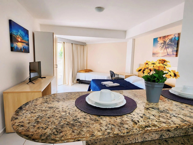 Отель Marsallis Flat Vista Mar JR, адрес на карте Натал, Rua Pedro Fonseca Filho, 9036, Ponta Negra, с характеристиками номеров и доступностью онлайн бронирования на площадке ВашОтель.RU , цены проживания и удобства.