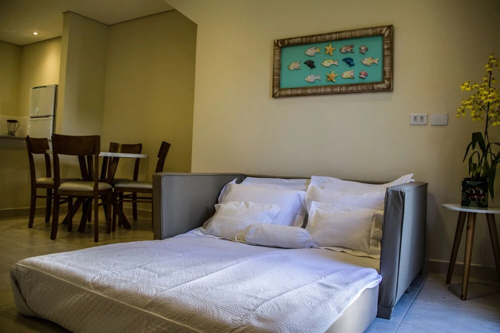 Здесь будем баловать себя водными процедурами: есть бассейн и открытый бассейн. Если планируете экскурсии, обратите внимание на экскурсионное бюро апартаментов. Любимца не придётся оставлять дома: разрешается проживание с питомцем.