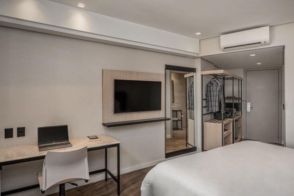 Отель Intercity Porto Alegre Aeroporto 4 звезды, адрес на карте Порту-Алегри, Rua Professor Sarmento Barata, 360, с описанием номеров и доступностью онлайн бронирования на ресурсе vashotel.ru , цены проживания и удобства.