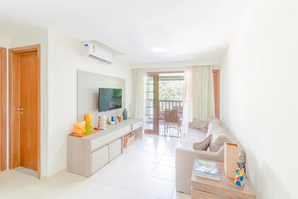 Отель PF35 Ótimo Quarto e Sala a 25m da Praia, адрес на карте Прайа ду Форте, Condomínio Kauai, Aldeia dos Pescadores, с описанием номеров и возможностью онлайн бронирования на сайте vashotel.ru , стоимость проживания и удобства.