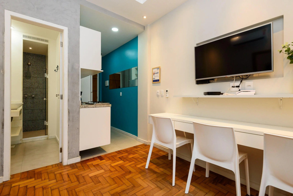 Отель Estúdio com Vista Mar em Copacabana | MVC 15/911, адрес на карте Рио-де-Жанейро, Rua Ministro Viveiros de Castro, 15, Copacabana, с описанием номеров и доступностью онлайн бронирования на сайте vashotel.ru , стоимость проживания и удобства.
