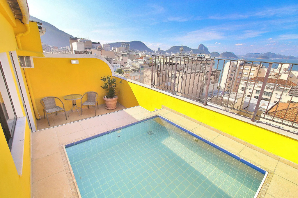 Отель Linda Cobertura duplex com varanda e piscina e proximo da praia de Copacabana!, адрес на карте Рио-де-Жанейро, 94 Rua Raul Pompeia, Copacabana, Rio de Janeiro, CEP 22080-001, Brazil, с описанием номеров и возможностью онлайн бронирования на сайте vashotel.ru , цены проживания и удобства.