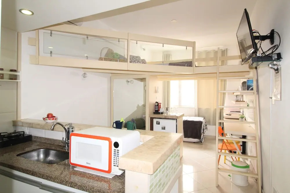 Отель Lindo Estúdio na praia de Copacabana, адрес на карте Рио-де-Жанейро, Avenida Atlântica 3806 apartamento 210, Copacabana, Rio de Janeiro, CEP 22071-001, Brazil, с описанием номеров и доступностью онлайн бронирования на площадке ВашОтель.RU , стоимость проживания и удобства.