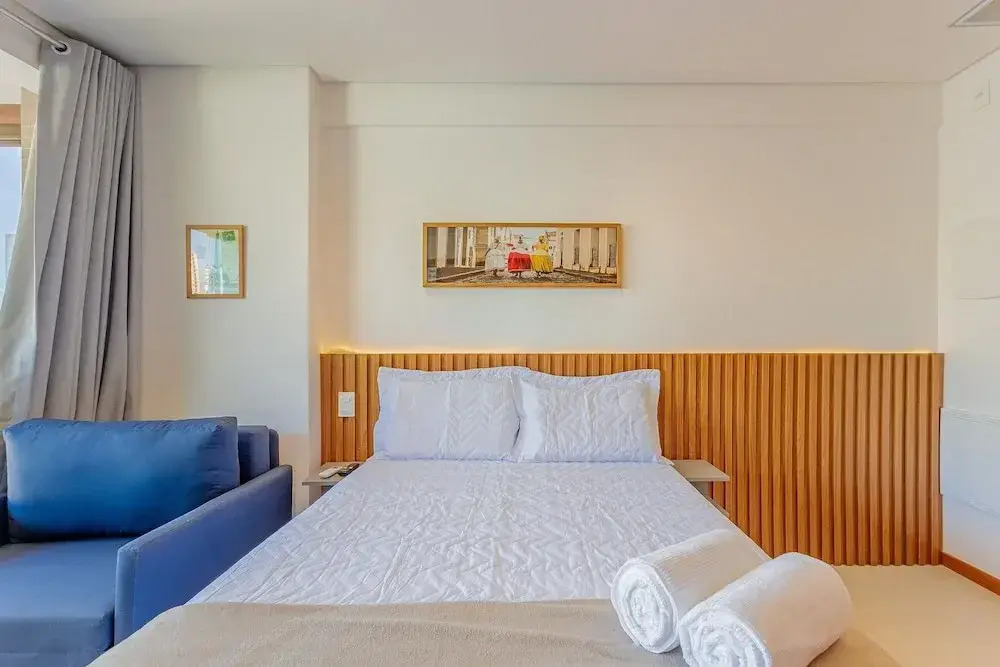 Отель BR08 Apto a 220m Praia Farol da Barra, адрес на карте Сальвадор, R. Marquês de Caravelas, с описанием номеров и правом онлайн бронирования на ресурсе vashotel.ru , цены проживания и удобства.