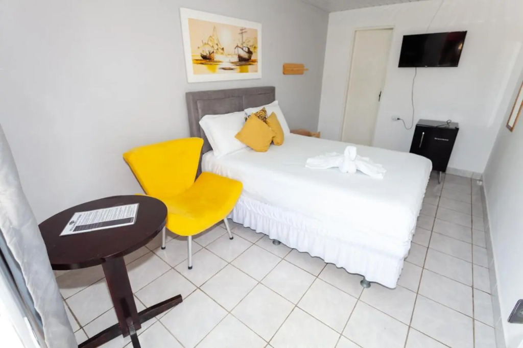 Отель Pousada Brisa Dourada (Pousada Villa Goya) 3 звезды, адрес на карте Сан-Жосе-да-Короа Гранде, LOTEAMENTO COSTA DO SOL, 38 - Bairro: CENTRO, с описанием номеров и доступностью онлайн бронирования на ресурсе ВашОтель.RU , стоимость проживания и удобства.