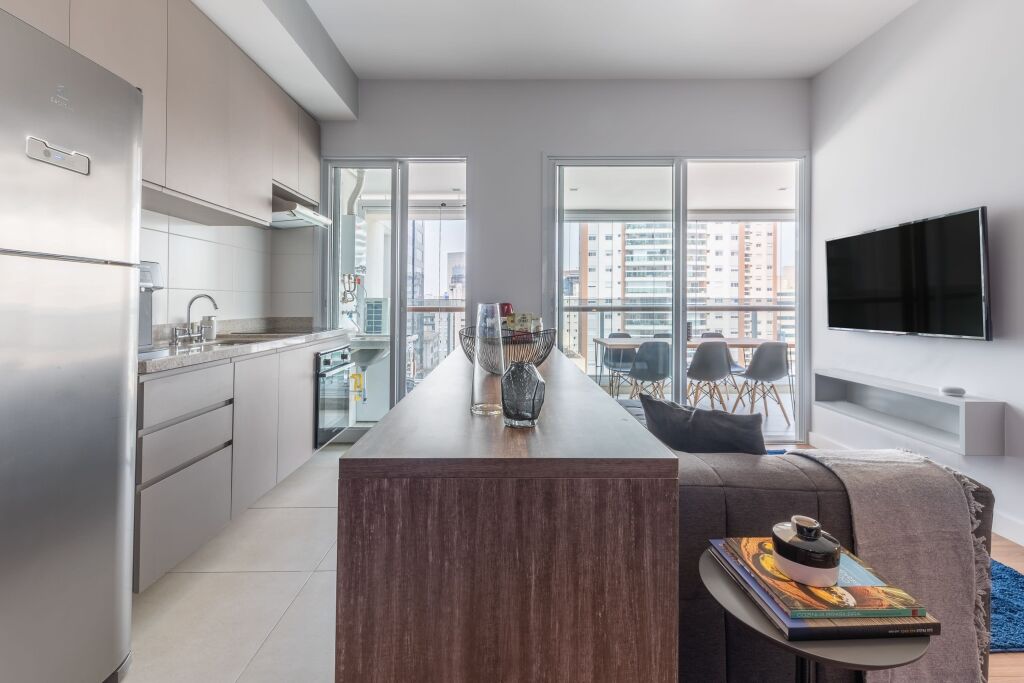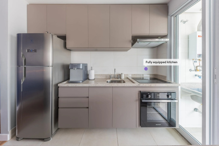 Отель Apartamento estiloso com varanda| Vila Olímpia, адрес на карте Сан-Паулу, Rua Pequetita 111, 1103, с описанием номеров и возможностью онлайн бронирования на сайте ВашОтель.RU , стоимость проживания и удобства.