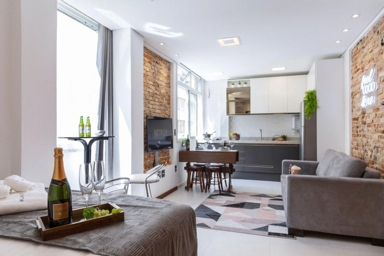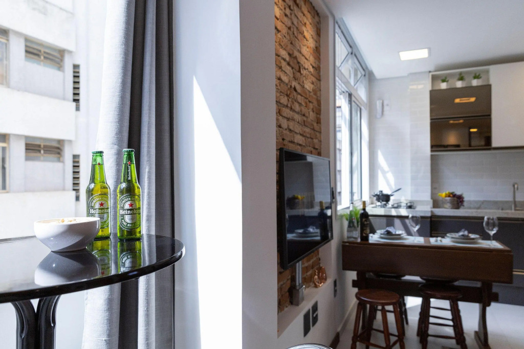 Отель Estúdio Moderno, Centro Histórico, AC e Wi-fi, адрес на карте Сан-Паулу, Rua Barão de Itapetininga, 37, Centro Histórico, с описанием номеров и доступностью онлайн бронирования на ресурсе vashotel.ru , стоимость проживания и удобства.