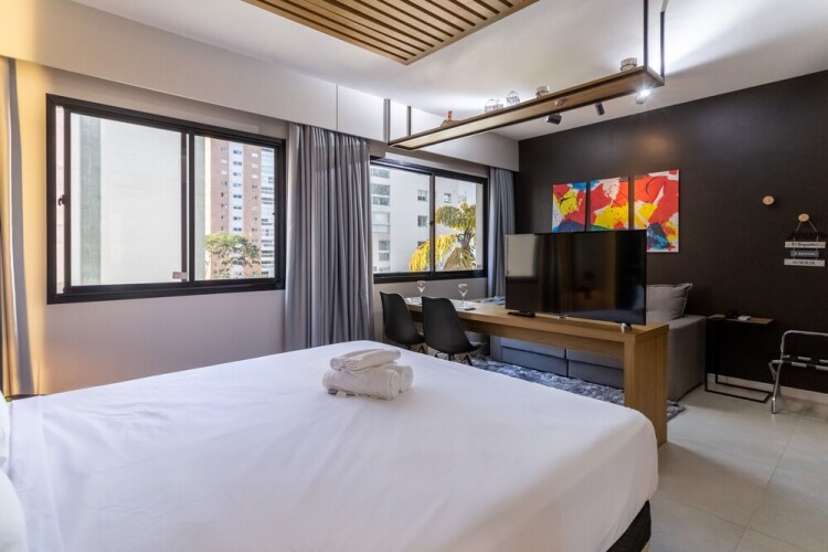 Отель Flat Moema 207, адрес на карте Сан-Паулу, Av. Rouxinol, 57, с характеристиками номеров и доступностью онлайн бронирования на ресурсе ВашОтель.RU , стоимость проживания и удобства.