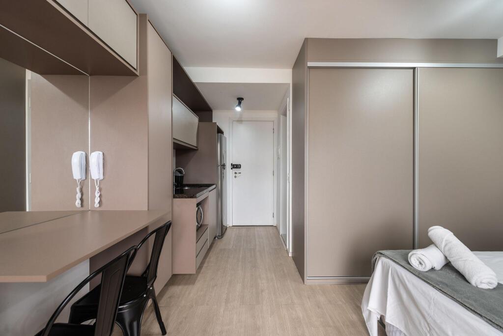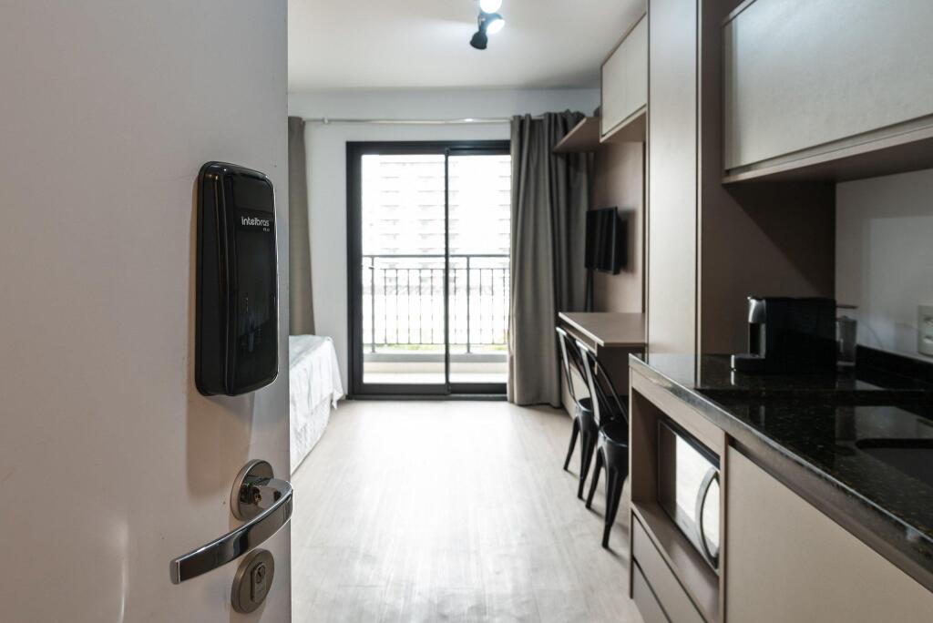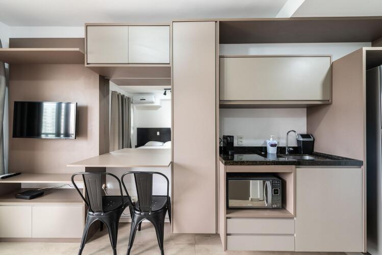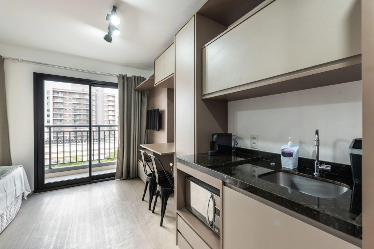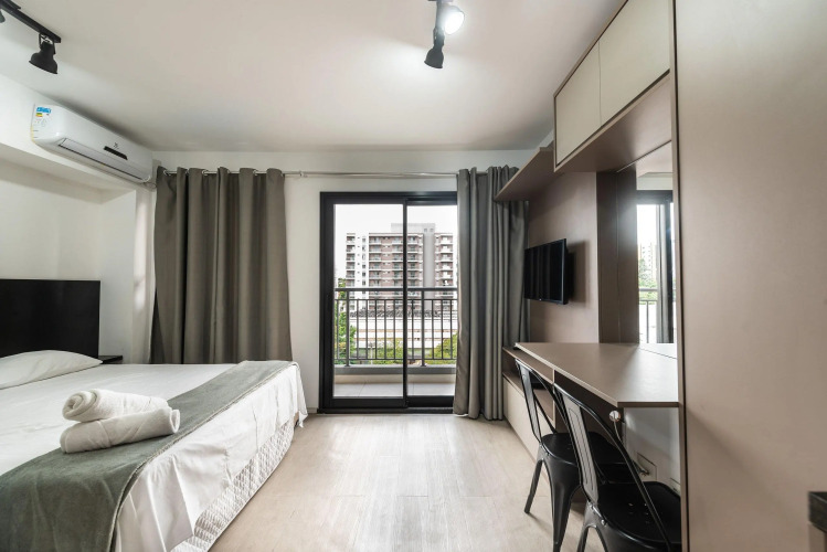 Отель IA5 Studio Moema Incrível e Moderno Completo, адрес на карте Сан-Паулу, Avenida Carinas, 301, Indianopolis, с характеристиками номеров и доступностью онлайн бронирования на сайте vashotel.ru , цены проживания и удобства.