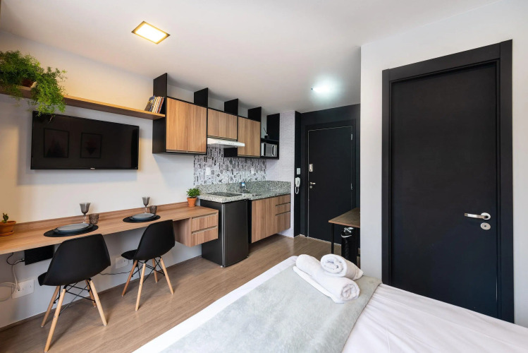 Отель MV135 - Studio confortável próximo à Estação Brás., адрес на карте Сан-Паулу, R. Cel. Mursa, 56, Brás, с описанием номеров и возможностью онлайн бронирования на площадке ВашОтель.RU , цены проживания и удобства.