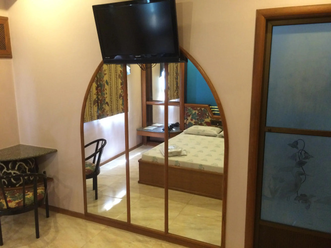 В номере вы найдёте душ и телевизор. Оснащение зависит от выбранной категории номера.