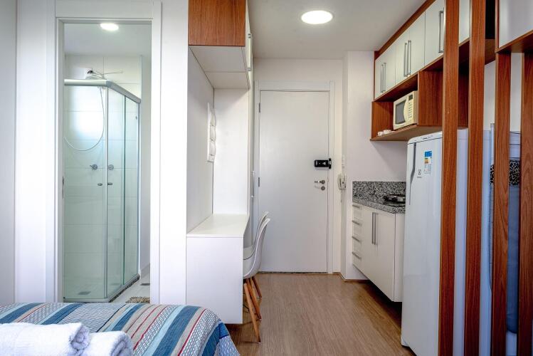 Отель Studio 99 delicinha no Brás, адрес на карте Сан-Паулу, R. Coronel Mursa, 56, Brás, с описанием номеров и правом онлайн бронирования на сайте vashotel.ru , стоимость проживания и удобства.