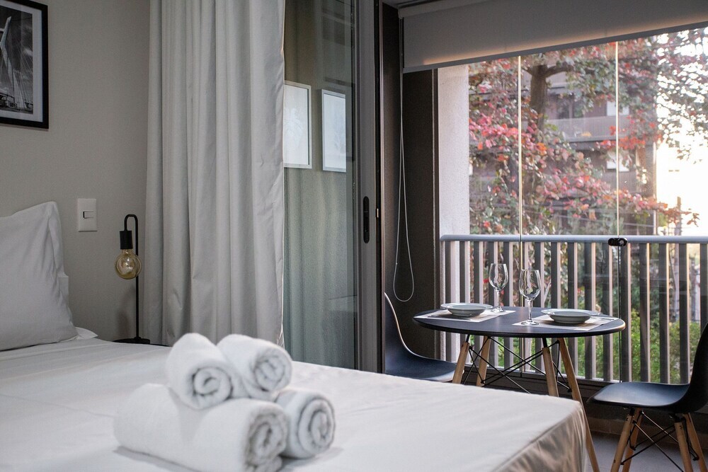 Отель Studios Hub Vila Madalena 2.0, адрес на карте Сан-Паулу, R. Sen. César Lacerda Vergueiro 160, с описанием номеров и возможностью онлайн бронирования на ресурсе ВашОтель.RU , стоимость проживания и удобства.