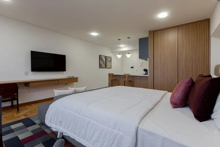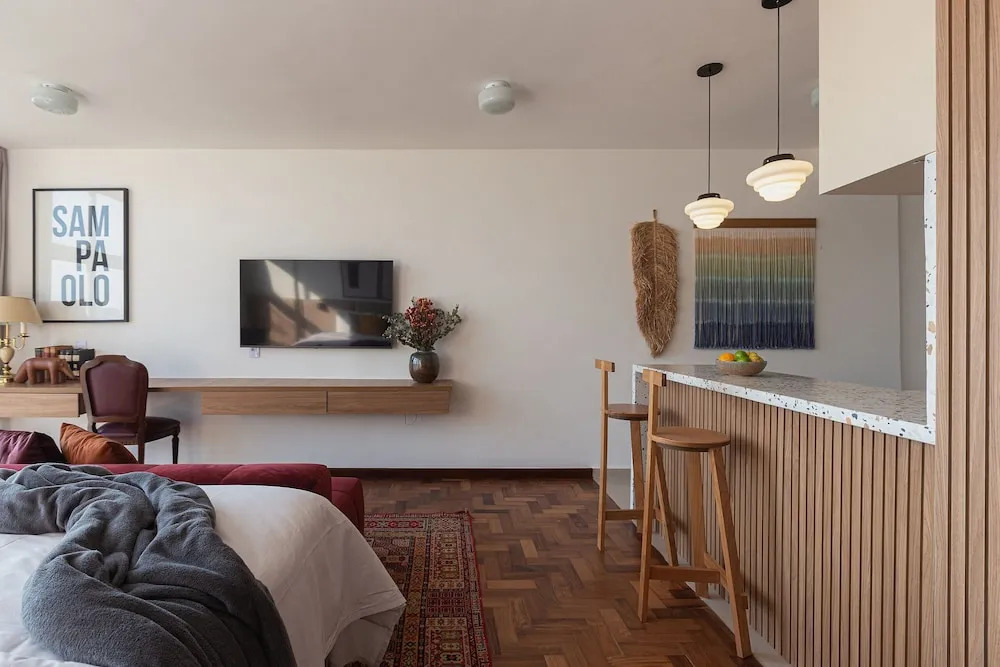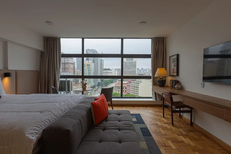 Подходящий вариант для большой компании: апартаменты «Vossa Bossa Sky Mirante» находятся в Сан-Паулу. Эти апартаменты расположены 1 км от центра города. Рядом с апартаментами можно прогуляться. Неподалёку: Сан-Бенту, Здание Мартинелли и Муниципальный театр.