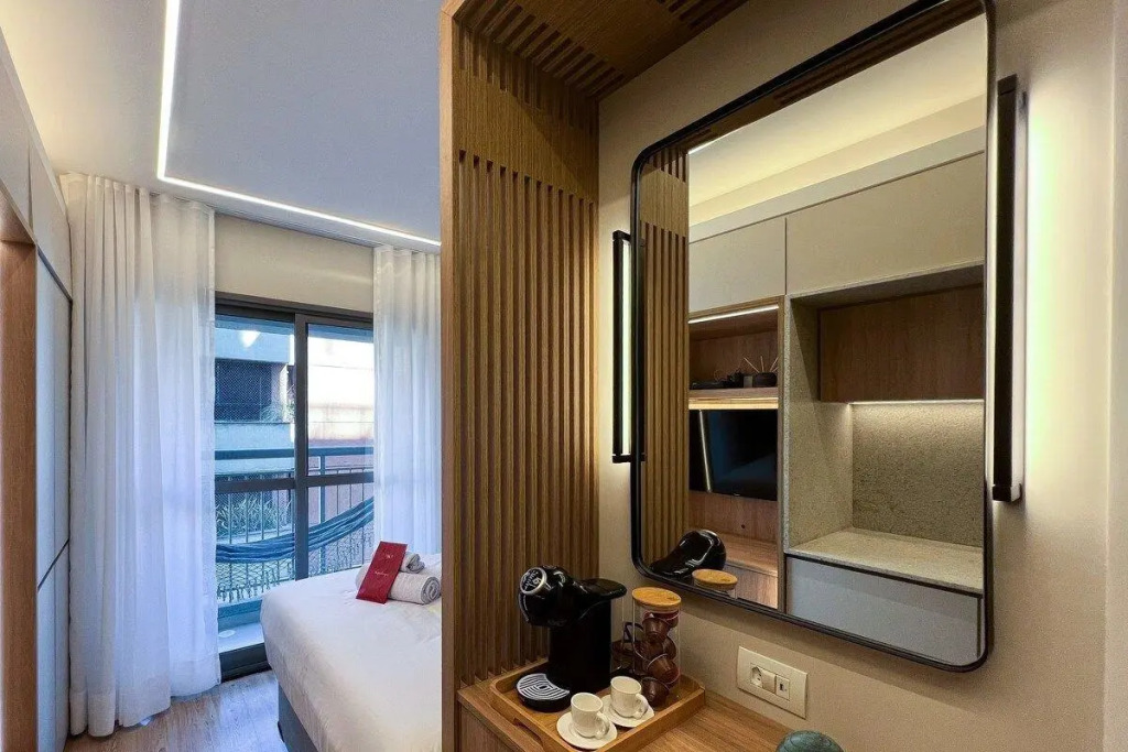 Отель Zainalofts7 Moema - 1km Ibira e 200m metrô 1107 ID, адрес на карте Сан-Паулу, Alameda Jauaperi, 299, с описанием номеров и правом онлайн бронирования на площадке vashotel.ru , стоимость проживания и удобства.