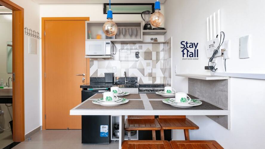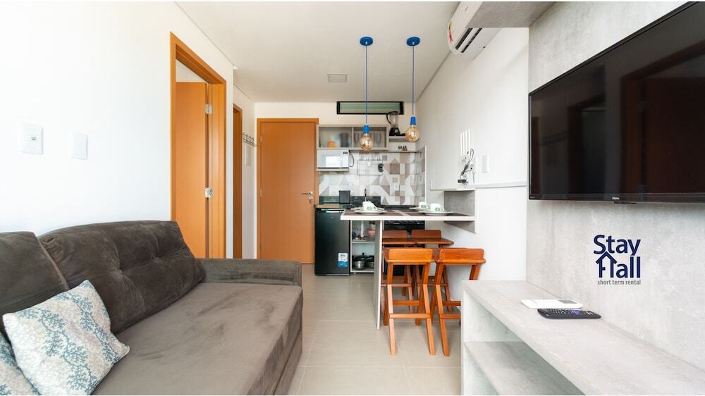 Отель Flat 1Q- Cond Piscina e Varanda-SH073M, адрес на карте Tamandare, R. Dois, с описанием номеров и возможностью онлайн бронирования на ресурсе vashotel.ru , стоимость проживания и удобства.
