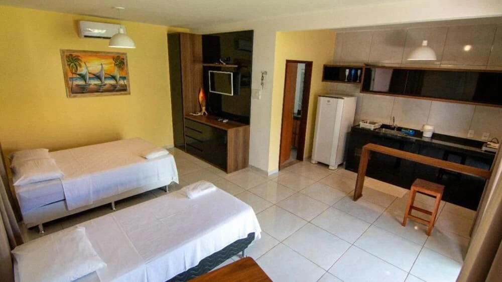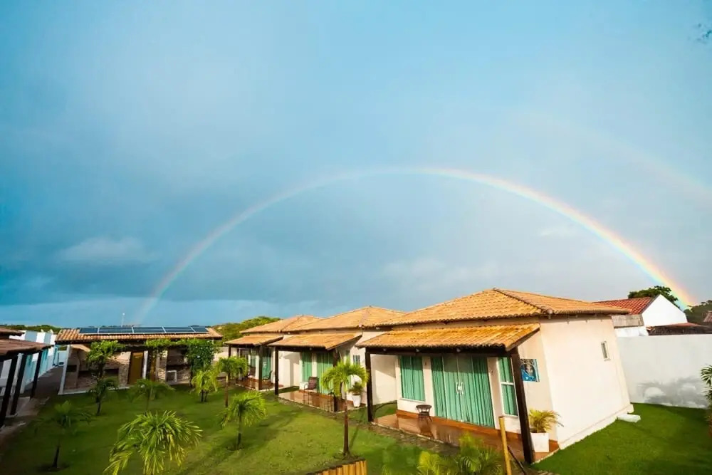 Отель Chal Aconchegante com Vista Jardim em Vila - 06, адрес на карте Touros, Km 0 BR 101 - Rua cactos nº 5., с описанием номеров и возможностью онлайн бронирования на ресурсе vashotel.ru , цены проживания и удобства.