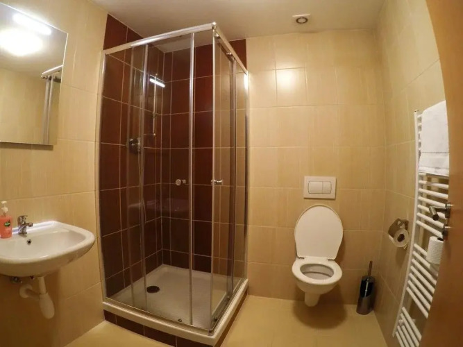 В номере вы найдёте душ и телевизор. Оснащение зависит от выбранной категории номера.
