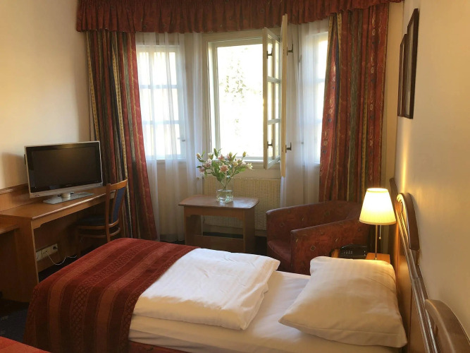 В баре отеля вы можете перекусить перед прогулкой по городу. Если захочется более плотно пообедать или поужинать, то рядом с отелем находится торговый центр "Новый Смихов", где много ресторанов и магазинов. Если вы любите активный отдых, то недалеко от отеля можете посетить поле для гольфа и теннисные корты.