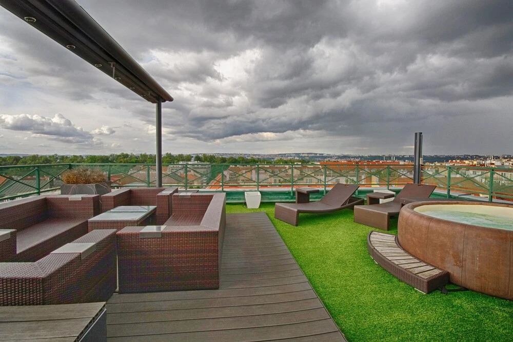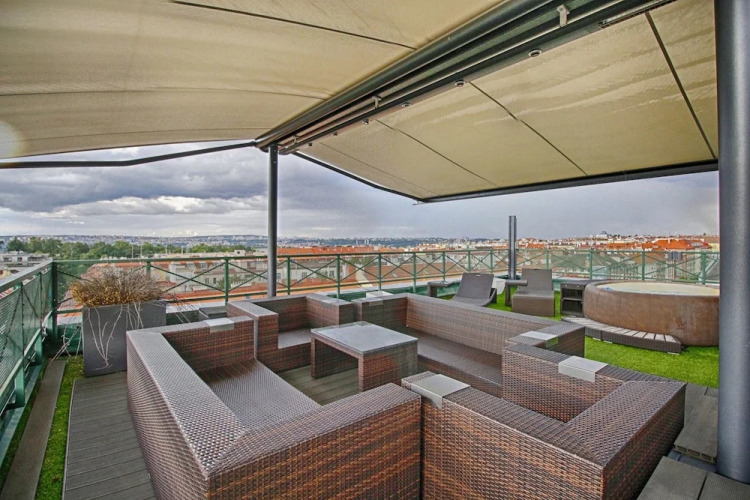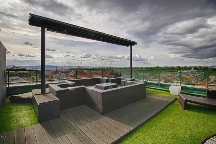 Отель Panoramic Apartment Roof Terrace&Jacuzzi, адрес на карте Прага, Pod Parukárkou 10 Prague 3, с характеристиками номеров и возможностью онлайн бронирования на сайте vashotel.ru , стоимость проживания и удобства.